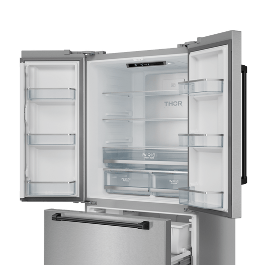 Thor Kitchen RF3621CTD99BLK 36 Inch 20.3 Cu Ft French Door Counter Depth Refrigerator With Ice Maker In Stainless Steel/Black Gordon Ramsay Series - Rf3621Ctd99-Blk
